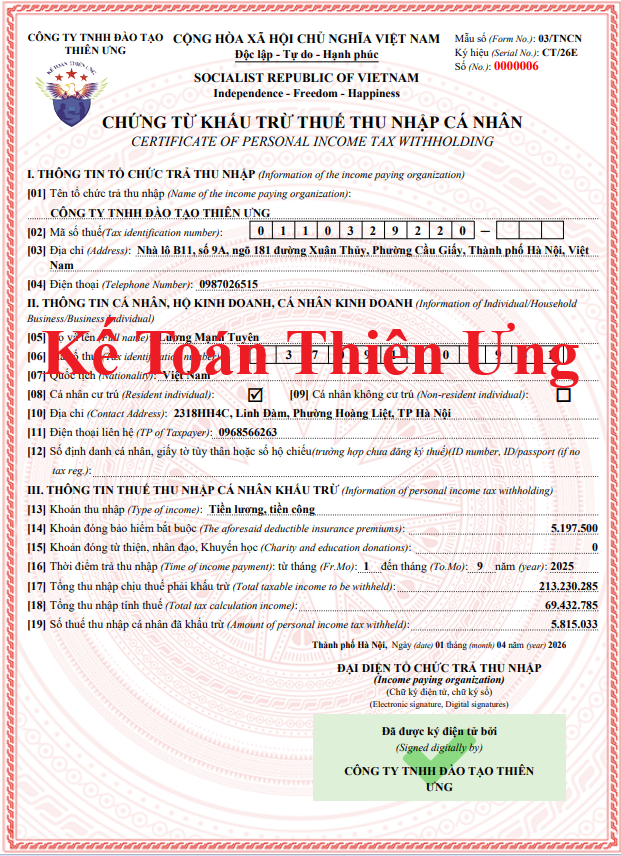Luật Thuế TNCN số 109/2025/QH15 có hiệu lực thi hà...