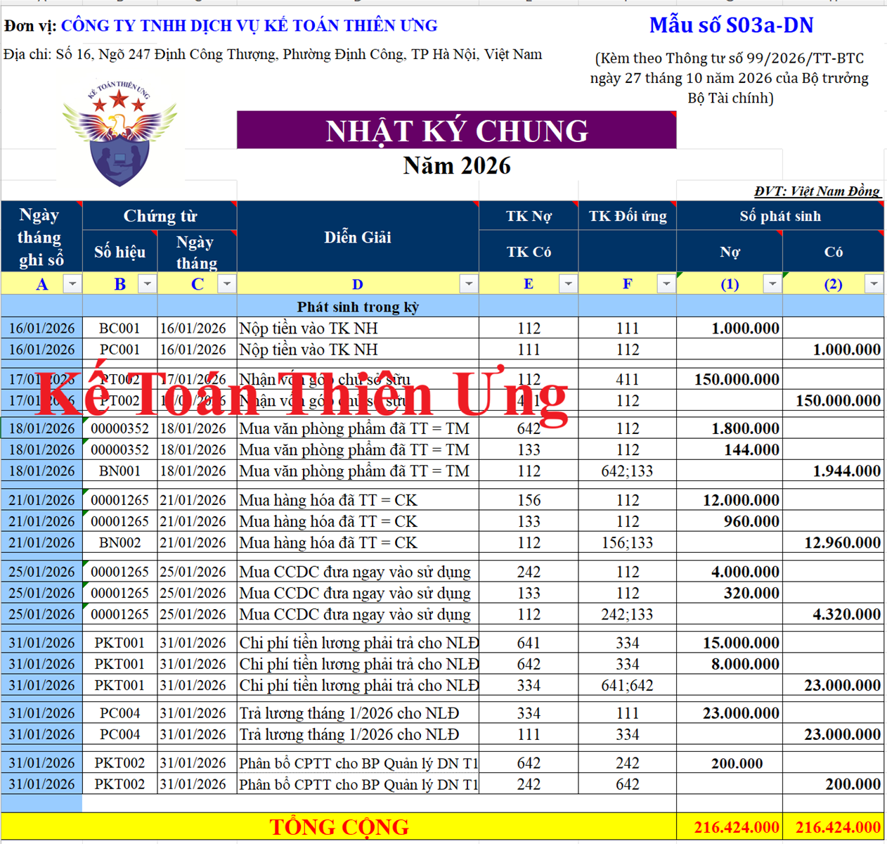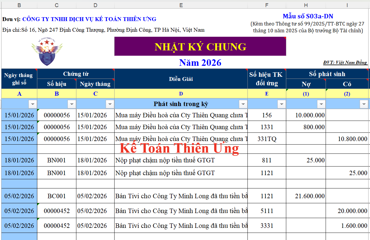 Hướng dẫn cách lập sổ Nhật ký chung bằng Excel, th...