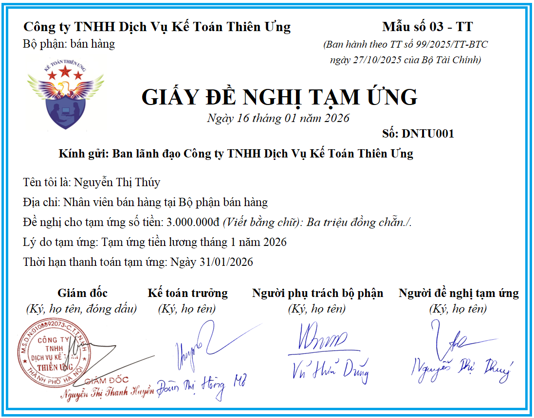 Lưu ý: Tùy theo đặc điểm hoạt động sản xuất kinh doanh và yêu cầu quản lý của đơn vị mình, doanh nghiệp được xây dựng, thiết kế biểu mẫu chứng từ kế toán so với biểu mẫu hướng dẫn ban hành kèm theo Thông tư 99/2025/TT-BTC.