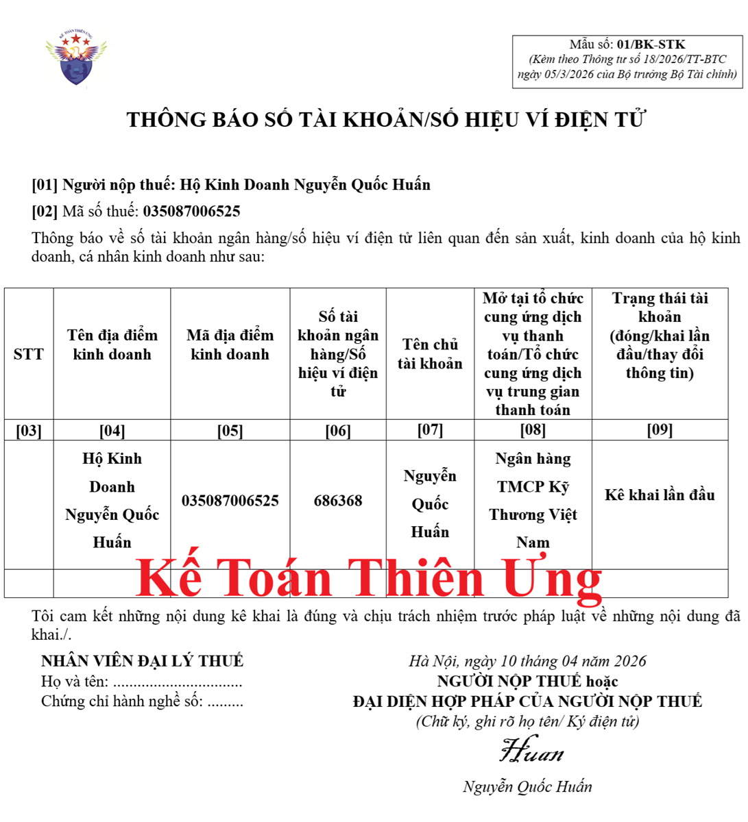 Điểm mới 15: Về việc công khai bảng công khai thông tin hộ khoán theo mẫu số 01/CKTT-CNKD.