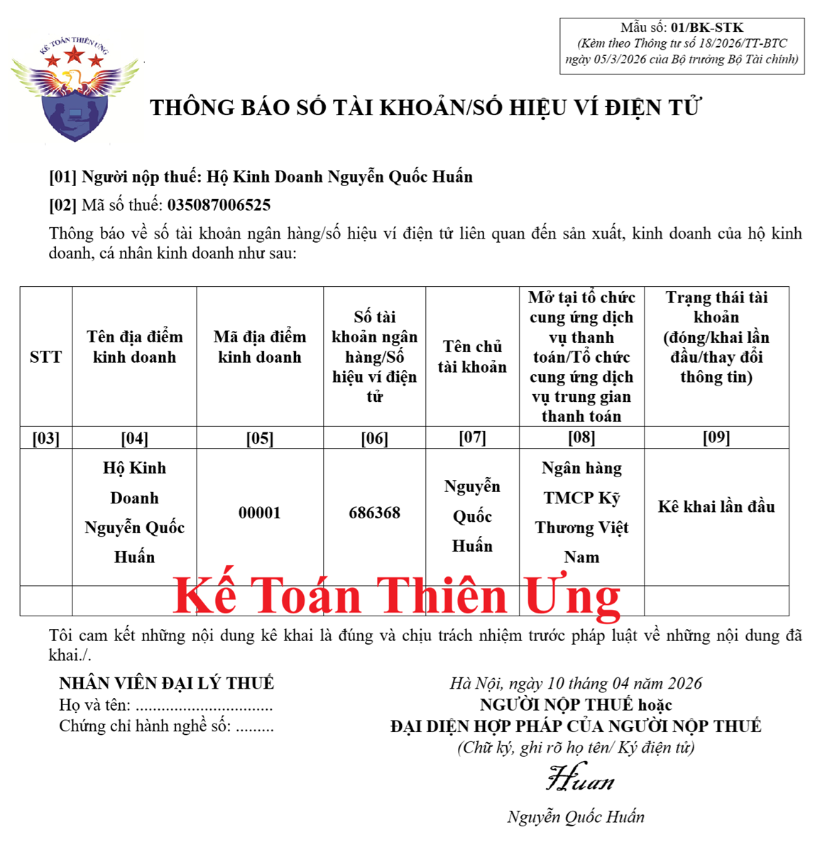 a) Hộ kinh doanh, cá nhân kinh doanh mở sổ tiền gửi ngân hàng để theo dõi chi tiết tiền gửi tại từng ngân hàng theo từng số hiệu tài khoản giao dịch của hộ kinh doanh, cá nhân kinh doanh (Mỗi tài khoản tại từng ngân hàng được mở một sổ tiền gửi ngân hàng riêng).
